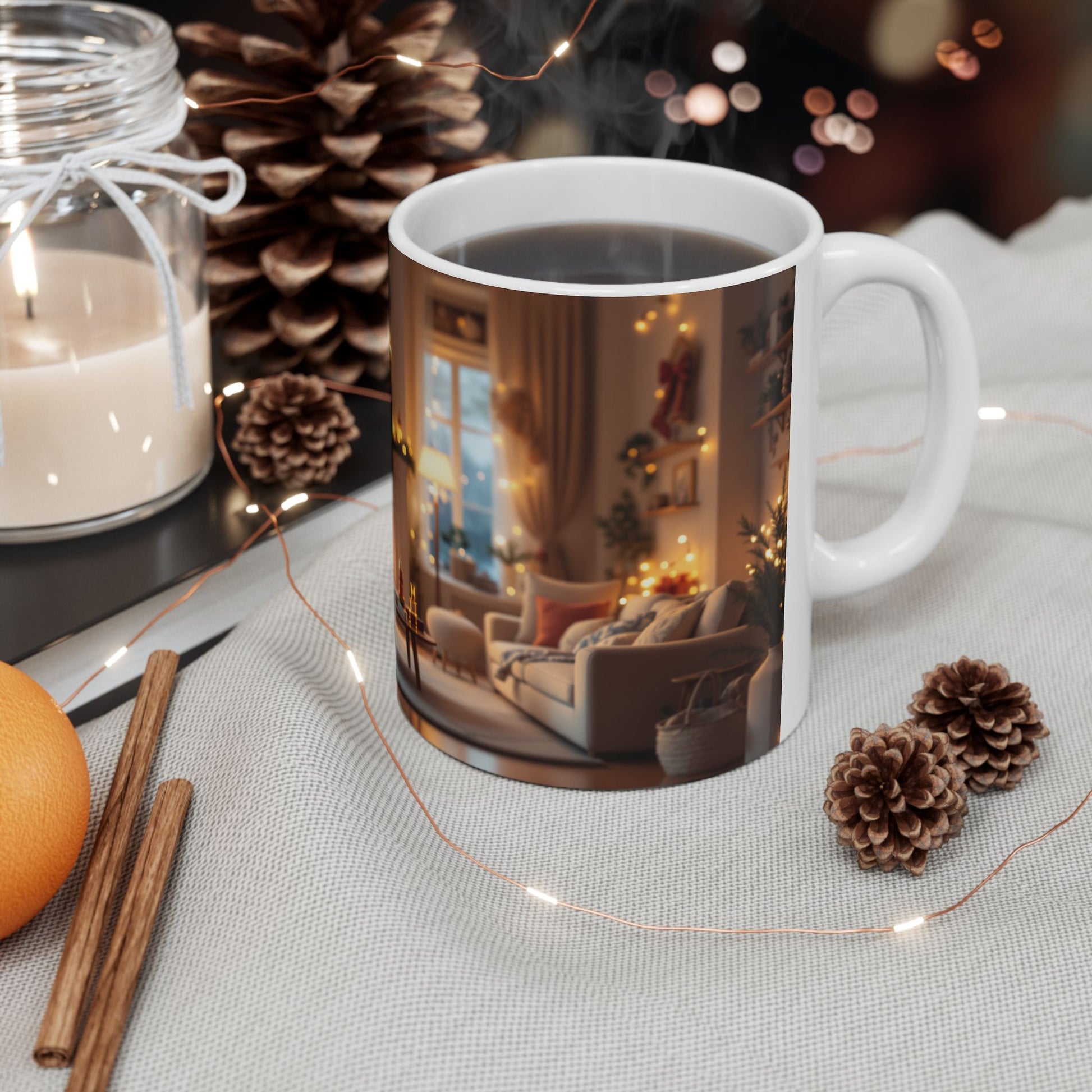 This Ceramic Mug brings warmth and joy to your daily routine. Crafted from high-quality, glossy ceramic, it radiates a vibrant aura that brightens up your mornings or cozy evenings. Perfect for sipping your favorite beverage, this mug fits seamlessly into your home, whether it's as a centerpiece during holiday gatherings or a personal touch to your home office. Ideal for coffee lovers, tea enthusiasts, or anyone who appreciates delightful design. This mug is a fantastic gift for birthdays, holidays, or just to show someone you care, making every occasion a little sweeter.