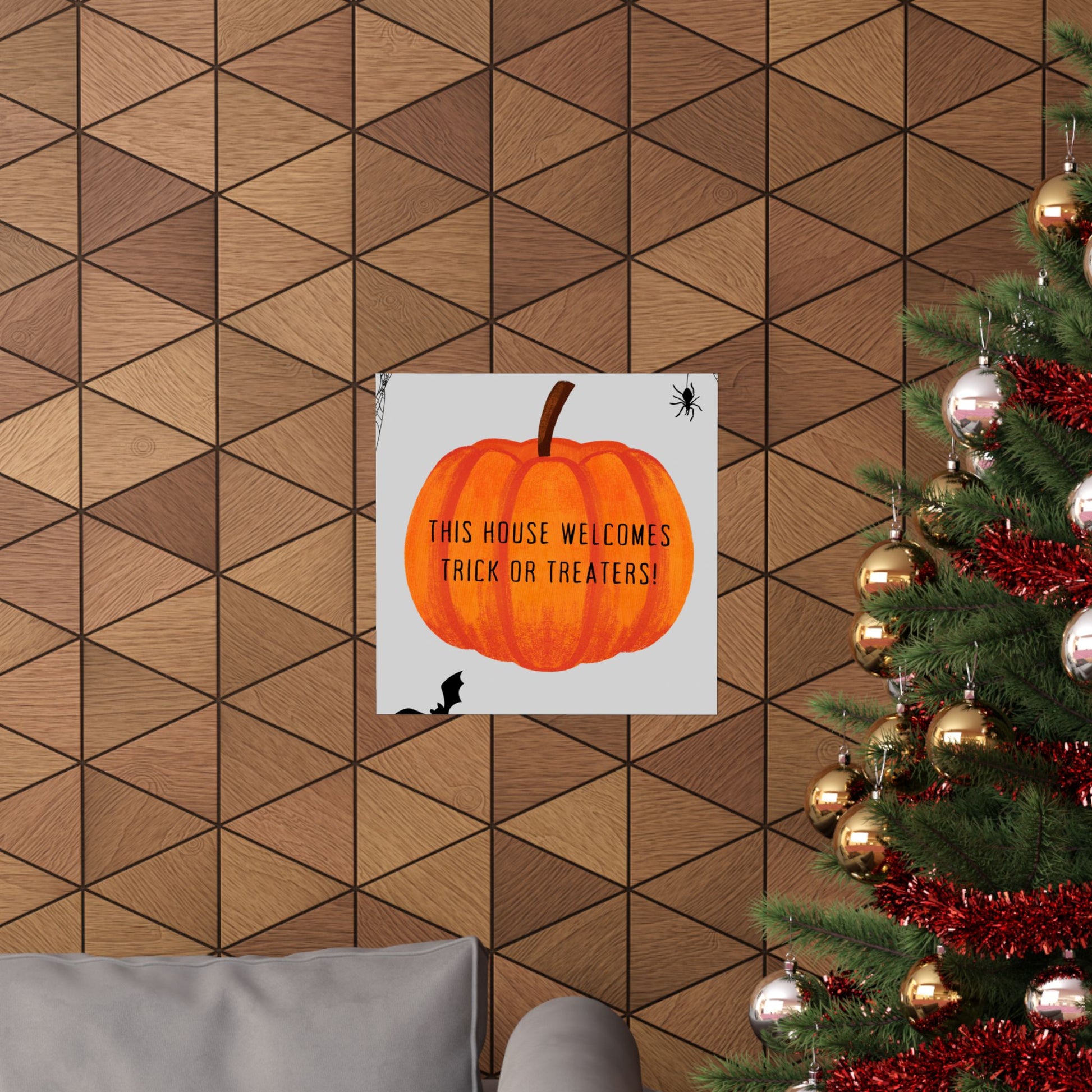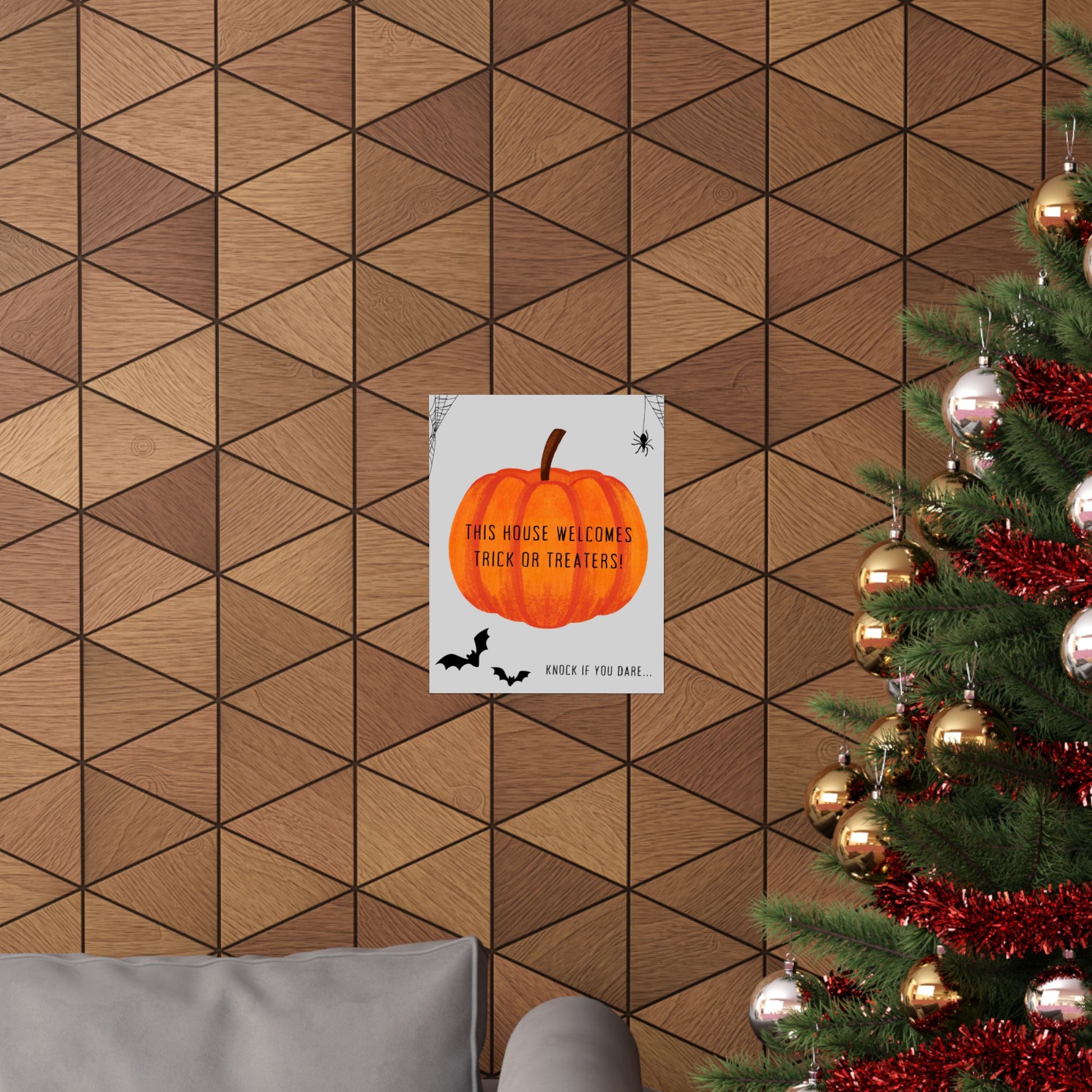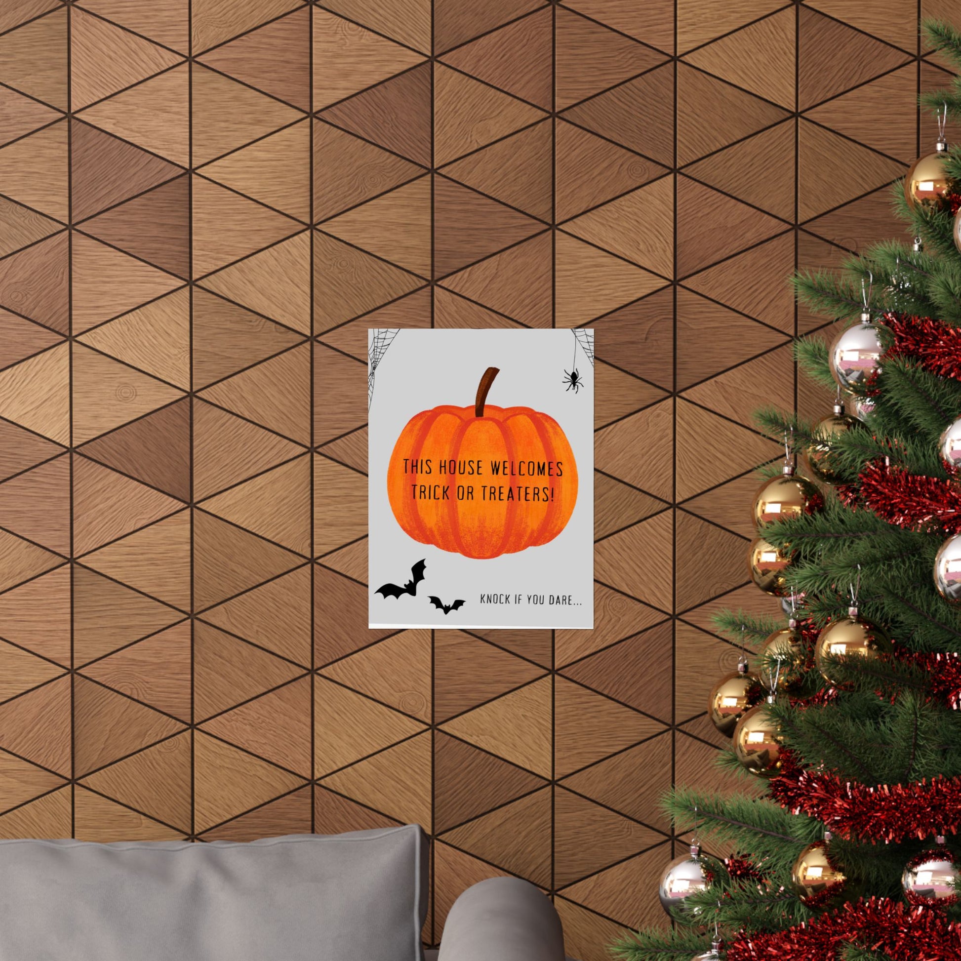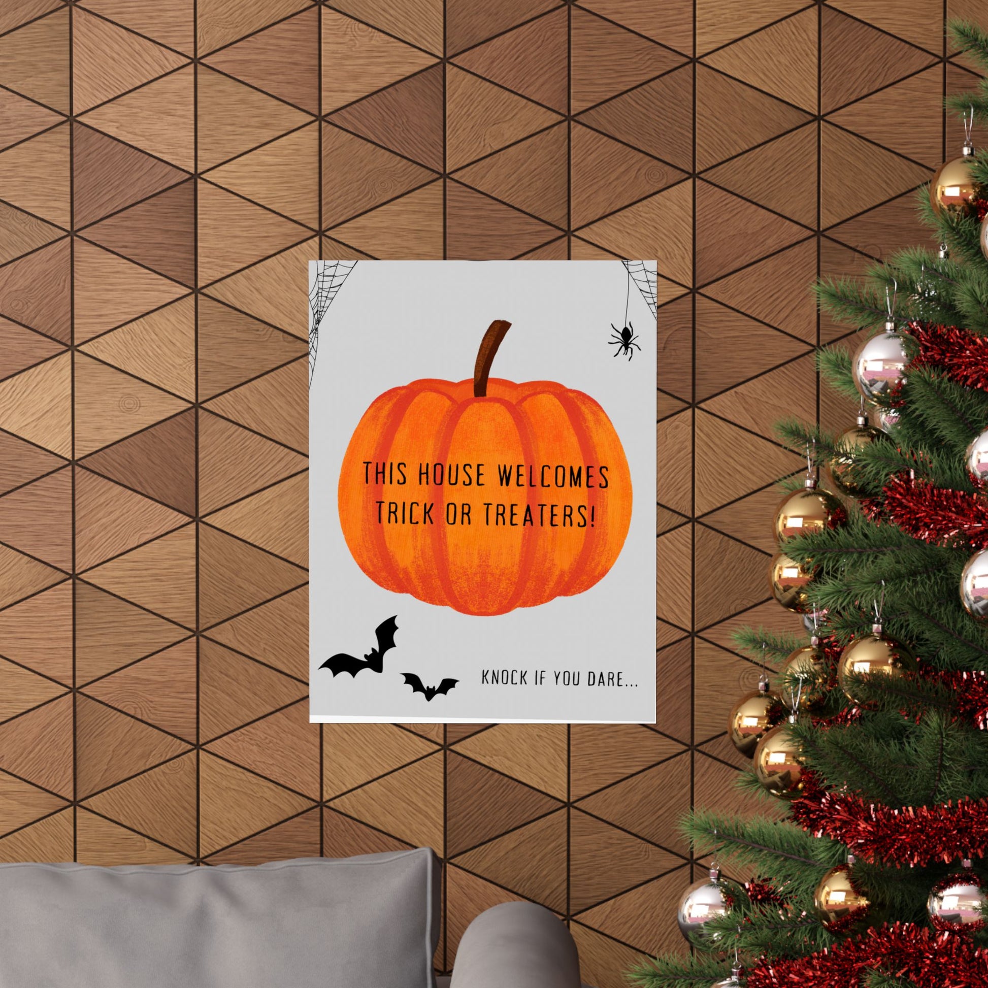Halloween Welcome Poster - Spooky Decor, Trick or Treat, Fall Decor, Pumpkin Halloween Sign, Home Greeting Decoration